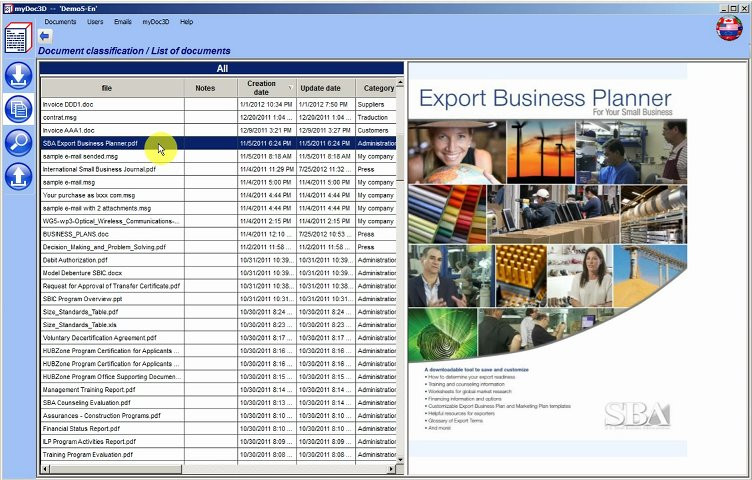 MyDoc3D je program pro správu a organizaci kancelářských dokumentů. Snadno vám pomůže ukládat, vyhledávat a spravovat všechny vaše dokumenty na jednom místě. MyDoc3D podporuje širokou škálu formátů, včetně souborů Microsoft Office, OpenOffice, PDF, obrázků a textových souborů.