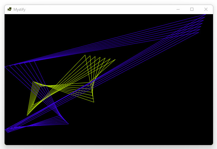 Mystify je moderní verze klasického spořiče obrazovky Mystify Your Mind pro Windows. Využívá technologii SkiaSharp s podporou akcelerace OpenGL a umožňuje export spořiče do video souboru.