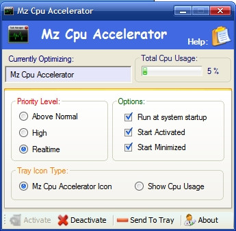 Mz Cpu Accelerator je velmi snadno použitelný. Stačí jej spustit a poté začít používat aplikace, které chcete zrychlit. Nástroj bude automaticky upravovat priority aktivních oken tak, aby zajistily nejlepší možný výkon.