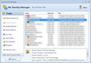 Mz StartUp Manager byl vytvořen pro snadnou kontrolu nad programy po spuštění Windows. Můžete tak přidávat nové aplikace, zakázat, povolit či odstranit nechtěné programy, které se automaticky spustí po startu Windows.