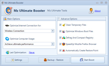 Mz Ultimate Booster je silná aplikace pro systém Windows, určena pro vylepšení rychlosti a stability počítače. Dokáže vyladit nastavení systému (automatickou detekcí hardwaru) pro dosažení maximálního výkonu PC.