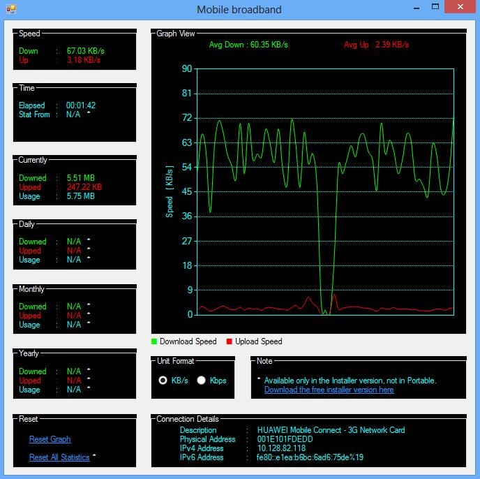 N-Stat je malou nenáročnou aplikací určenou k monitoringu a vedení přehledu o využití sítě. Zobrazí informace o rychlosti stahování a to nejen momentální, ale i průměrnou, dále pak uplynulý čas od připojení do sítě, uploadovou rychlost a samozřejmě velikost dat, které jste stahovali nebo nahrávali.