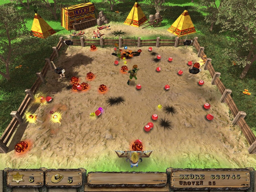 Hra Na divokém západě vám umožní být součástí nejzábavnější demolice všech dob. Vyhoďte do povětří vše kolem vás. Pomocí koulí musíte zničit množství vznětlivých věcí, jako jsou rakety, bomby, ohnivé koule a další výbušné materiály. Není to ale tak jednoduché. Každý úkol si žádá zvláštní přístup. Hra Na divokém západě je tedy senzační směs hlavolamů, skvělé 3D grafiky a vynikající hratelnosti.