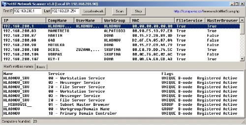 NetBT Network Scanner je program využívající NetBT (NetBios over TCP/IP) pro získání informací o okolních počítačích. Rozsah IP adres pro scanování můžete zadat ručně nebo použít autodetekci (tlačítko "Local Network").