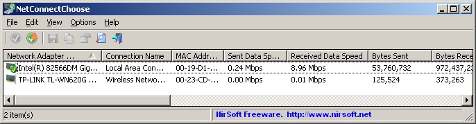 NetConnectChoose je nástroj, díky kterému si snadno vyberete standardní připojení k internetu, které bude použito pro všechny internetové aplikace, když máte více než jedno připojení k Internetu. NetConnectChoose také vykazuje rozsáhlé informace o každém aktivním připojení k síti či internetu, včetně síťového názvu adaptéru, MAC adresy, jméno serveru, MTU, rychlosti, aktuální příchozí nebo odchozí rychlost přenosu dat, počet přijatých a odeslaných paketů , počet přijatých a odeslaných bajtů a další ...