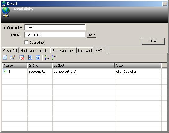 Pro každou sadu odesílaných pingů lze definovat hodnoty pro spouštění akcí a na tyto akce v průběhu monitorování reagovat např. odesláním emailu, spuštěním souborů