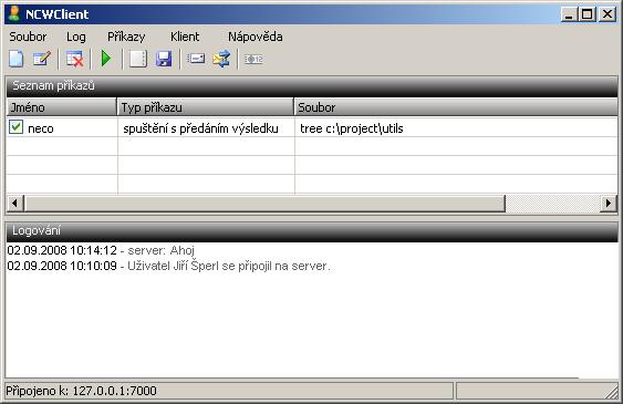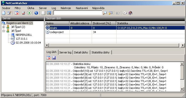 Pro přehlednost program obsahuje Log úloh, do kterého jsou zaznamenávány informace týkající se odesílaných pingů a Server log s podrobnostmi o komunikaci mezi klienty.