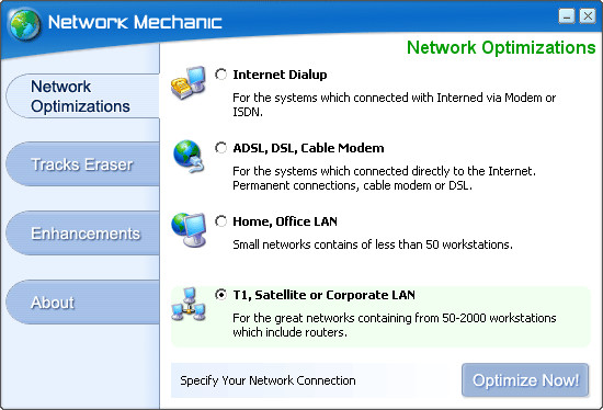 Network Mechanic je software pro optimalizaci internetového připojení, který vám pomůže zvýšit rychlost stahování i odesílání dat. Program funguje jako akcelerátor pro vaše síťové připojení a automaticky upravuje celou řadu parametrů, které ovlivňují rychlost internetu.