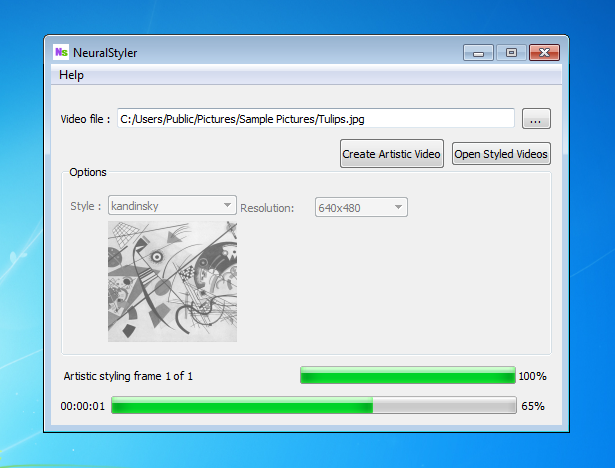 NeuralStyler je aplikace, která umožňuje používat klasické vizuální efekty do fotografií, videí či animací. Aplikace obsahuje nabídku několika použitelných stylů (ceremony, cubist, edtaonisl, es_brutal, hokusai, kanagawa, kandinsky, seurat, styrrynight), které mají název podle jejich autora nebo samotného názvu stylu. Pro každý typ souboru je podporován pouze jeden výstupní formát (animace - GIF, video - MP4, obrázek - JPG).