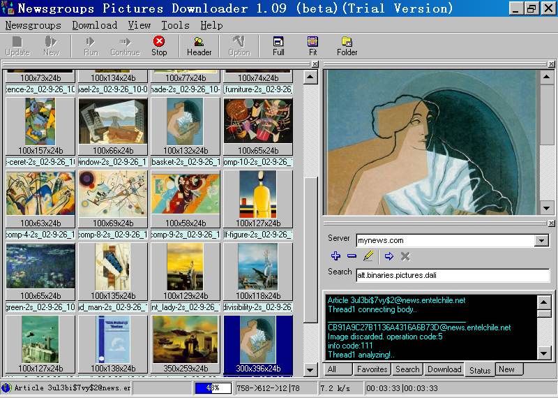 Newsgroups Pictures Downloader analyzuje články v diskusních skupinách, aby zjistil obrázky a fotografie (JPG, GIF), které jsou ve skupinách obsaženy a poté si je můžete stáhnout na pevný disk.