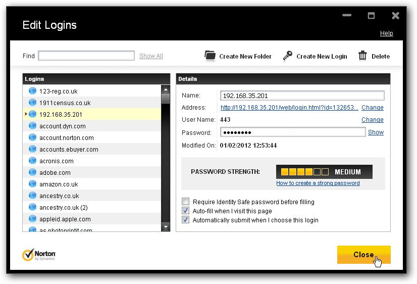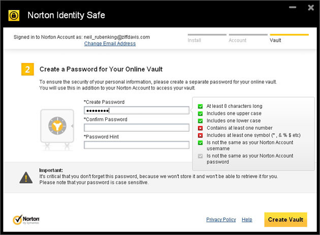 Norton Identity Safe je snadno použitelný. Stačí ho nainstalovat do vašeho prohlížeče a začít přidávat své hesla a další informace. Norton Identity Safe se o zbytek postará. Vaše informace budou uloženy v zabezpečeném úložišti a Norton Identity Safe je ochrání před neoprávněným přístupem.