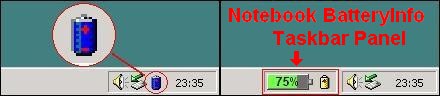 Notebook BatteryInfo je užitečný nástroj zobrazující aktuální kapacitu baterie vašeho notebooku. Program zobrazuje informace o stavu baterie (aktuální stav, spotřebu, zbývající čas do vybití baterie) v nástrojové liště.