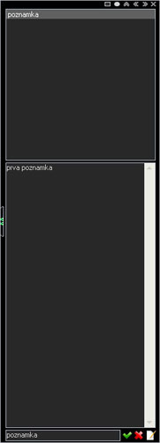 Notes je jednoduchá aplikace v podobě bočního panelu pro rychlé ukládání poznámek. Po spuštění vytvoří na kraji obrazovky panel s poznámkami, který je možné jednoduše skrýt. Panel je možné zobrazit v režimu "vždy nahoře", což zaručí, že je vždy nadosah. Je napsaný v C, a to zajiš?uje maximální rychlost a minimální hardwarové nároky. Verze v černé barvě.