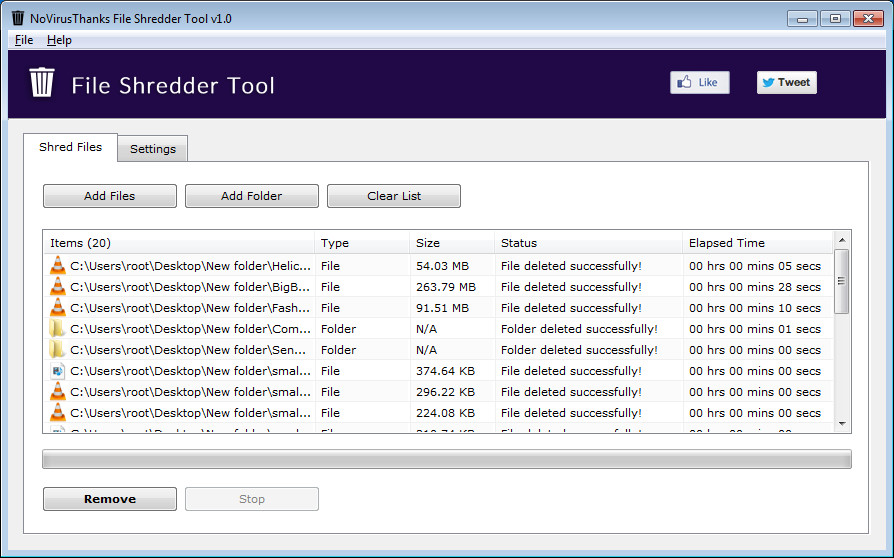 NoVirusThanks File Shredder Tool je nástroj pro trvalé odstranění souborů z disku. Umožňuje smazat soubory nebo složky nenávratně, a to i ty, které byly odstraněny z koše. Software používá různé metody k přepsání souborů, aby bylo nevratné jejich obnovení.