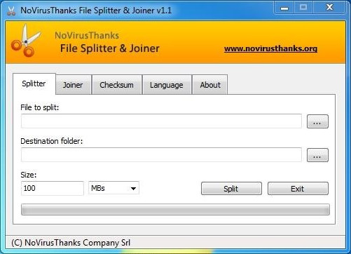 NoVirusThanks File Splitter & Joiner je malý a snadno použitelný nástroj, který vám pomůže rozdělit nebo spojit soubory. Můžete jej použít k rozdělení velkého souboru na menší soubory, abyste jej mohli snadněji uložit, přenášet nebo nahrávat. Můžete jej také použít ke spojení více malých souborů do jednoho velkého souboru.