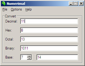 Numerimal umí provádět převod mezi desetinnými a hexadecimálními, osmičkovými, binárními a dalšími číslicemi. Nabízí možnost nastavení transparentnosti okna. Je zcela zdarma.