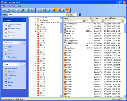 Dokáže soubory obnovit v jejich původním adresáři, podobně jako Koš systému windows. Je možné nastavit rozšířené filtry pro vyhledávání, uživatelské prostředí je jasné a velmi přívětivé.