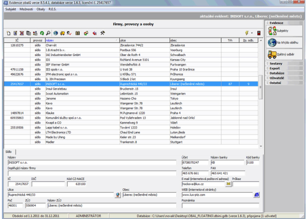 Program OBAL 8 vychází ze zákona č. 477/2001 Sb. (o obalech, v platném znění) a k němu příslušných prováděcích vyhlášek č. 116/2002 Sb. a 641/2004 Sb. Umožňuje podnikatelům a firmám vytvářet evidenci obalů uvedených na trh nebo do oběhu a zaznamenávat množství zpětně odebraných obalů včetně vratných a opakovaně použitelných.