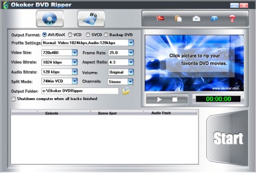 Okoker DVD Ripper je jednoduchý nástroj na ripování a zálohování vašich oblíbených DVD filmů na pevný disk vašeho počítače. Program poskytuje rychlou a jednoduchou konverzi DVD do AVI, VCD, SVCD, DivX, Xvid, MPEG-1/2/4 formátu. Okoker DVD Ripper je skvělým ripovacím nástrojem, který pracuje rychle a kvalitně!
