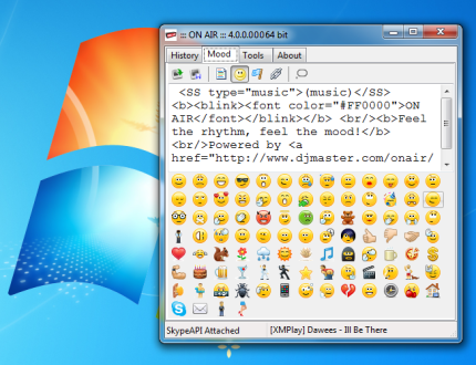 ON AIR je plug-in pro komunikační program Skype. Zobrazuje aktuálně přehrávanou audio skladbu ve formě stavové zprávy (tzv. mood message nebo status message) na uživatelském profilu. Nástroj zobrazuje aktuální přehrávanou skladbu na systémové liště v oznamovací oblasti.