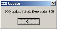 Nedávno se v nové verzi ICQ 5.1 build 2573 začala objevovat chyba při startu programu s textem ICQ update failed. Error code -505 kde se pak program již nespustil, chyba vzniká díky instalované češtiny, tato utilita vám sice češtinu programu zruší, ale ICQ opět zprovozní, icq tak provede svůj nutný update. Po této operaci již čeština build 2573 nainstalovat nepůjde (ICQ změní svou verzi). Tento program pouze přepíše přeložené soubory na soubory původní anglické.