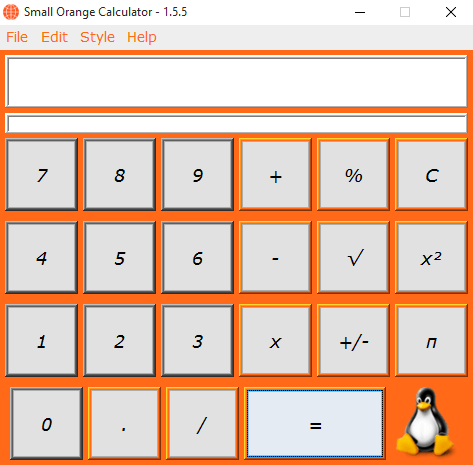 Orange Calculator je jednoduchá aplikace, která provádí aritmetické operace. Tato jednoduchá kalkulačka provádí sčítání, odčítání, násobení, dělení, procento, druhá odmocnina, záporná čísla a obsahuje také pi. Číslo π (pi) je matematická konstanta, která je poměr obvodu kruhu k jeho průměru a je přibližně rovna 3.14159