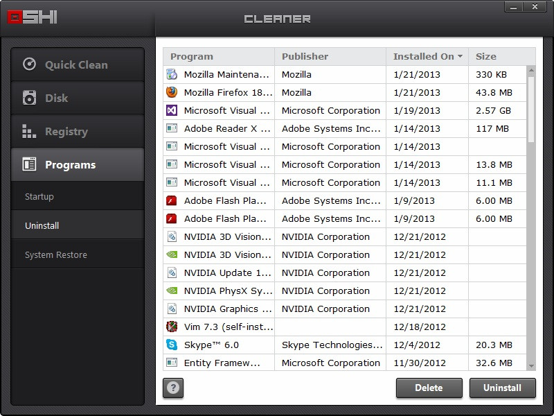 Oshi Cleaner také nabízí možnost odinstalovat staré programy a zakázat programy, které se spouštějí při startu počítače. To může výrazně zrychlit spouštění počítače.