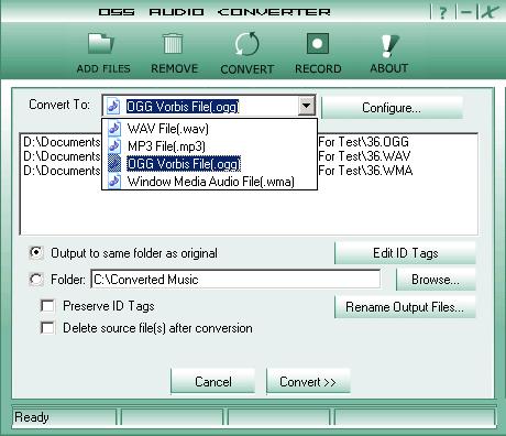 OSS Audio Convertor najde využití při převodu audio CD do souborů WAV, MP3 a WMA a naopak, při vypalování hudby z těchto souborů na zvukové CD.