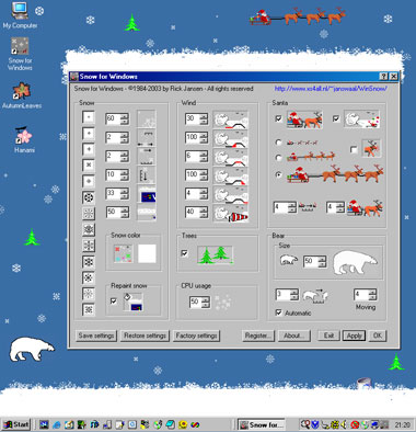 Tento šetřič vás jistě zavede do zimní sváteční atmosféry. Na obrazovce bude poletovat sníh a pěkně vám zasněží celou plochu.