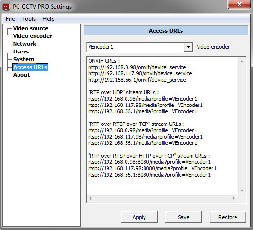 PC-CCTV je software, který umožňuje streamovat obrazovku počítače nebo záběry z IP kamery na jiné zařízení, jako je hlavní monitor, TV nebo webové rozhraní. Aplikace zajišťuje veškeré náležitosti pro streamování video obsahu, včetně generování URL adres pro DVR a NVR zařízení, a umožňuje sledování streamu pomocí multimediálního přehrávače VLC.