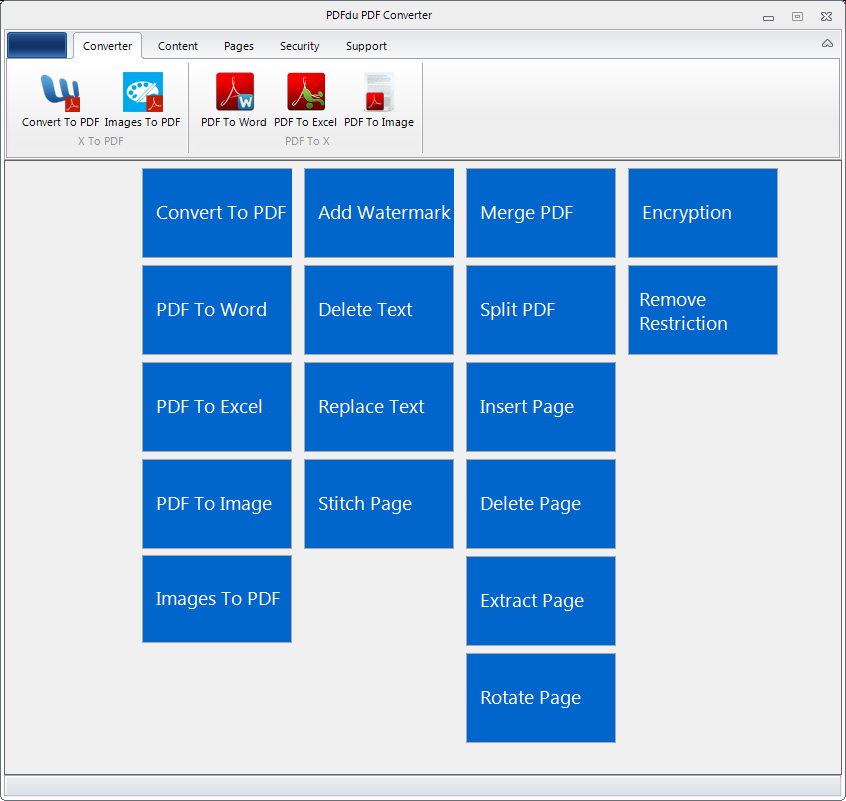 PDFdu PDF Converter je software pro konverzi, sloučení, rozdělení, otáčení a upravení zabezpečených dokumentů PDF. Poskytuje obousměrné převádění mezi PDF a ostatními formáty - DOC, DOCX, XLS, XLSX, JPG, PNG, TIFF, BMP nebo GIF.