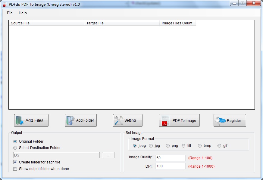 PDFdu PDF To Image Vám pomůže dávkové převést soubory PDF do obrazových souborů.