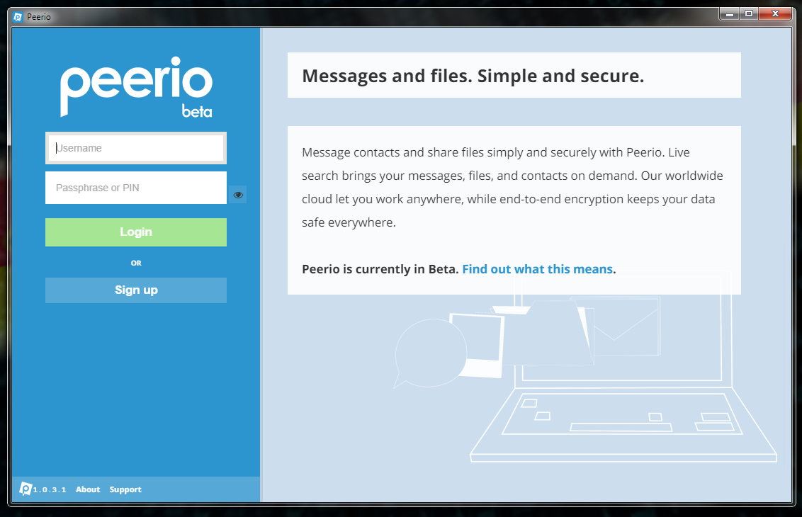 Peerio je nový komunikační program s integrovanou cloudovou platformou, což znamená, že Vaše důležité soubory a zprávy můžete mít bezpečně k dispozici online připraveny k odeslání odkudkoli. S end-to-end šifrováním, jsou zprávy a soubory šifrovány již před odesláním z počítače a mohou být přečteny pouze Vámi a Vašimi příjemci.
