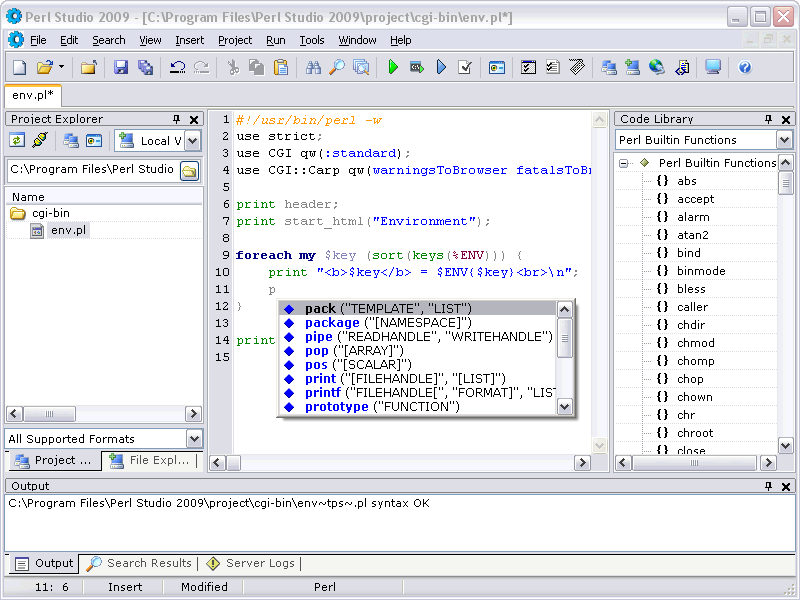 Perl Studio - je to pokročilý Perl editor se zaměřením na CGI programování, poskytující sofistikované a cenově dostupné řešení pro vývoj, vyladění a nasazování aplikací na bázi perl. Pomocí pokročilých vlastností budou vaše vývojářské procesy snadnější.