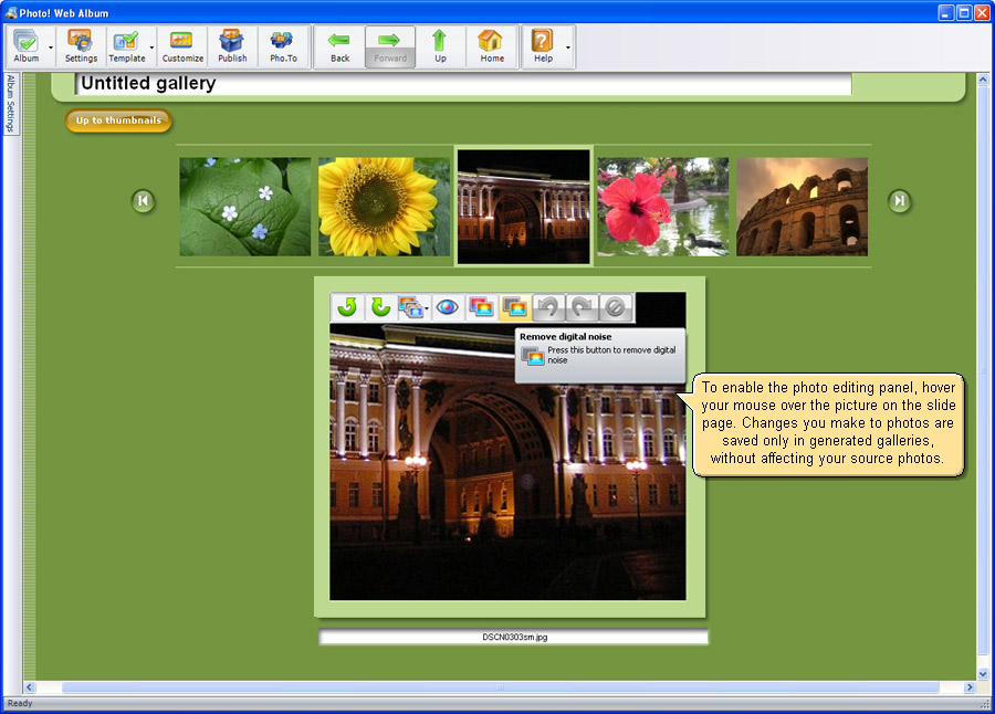 Photo! Web Album je nástroj pro tvorbu webových galerií, publikaci fotografií a jejich sdílení. Atraktivní rozhraní, vestavěný průvodce a kontextová nápověda zajistí, že si budou vedět rady i noví uživatelé. Obsahuje spoustu skvělých témat.