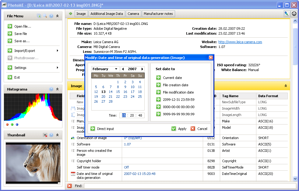 PhotoME - je to silný nástroj pro zobrazování a editování metadat digitálních fotografií. Dále je možno analyzovat a upravovat Exif a IPTC-NAA, stejně jako analyzovat ICC profily.