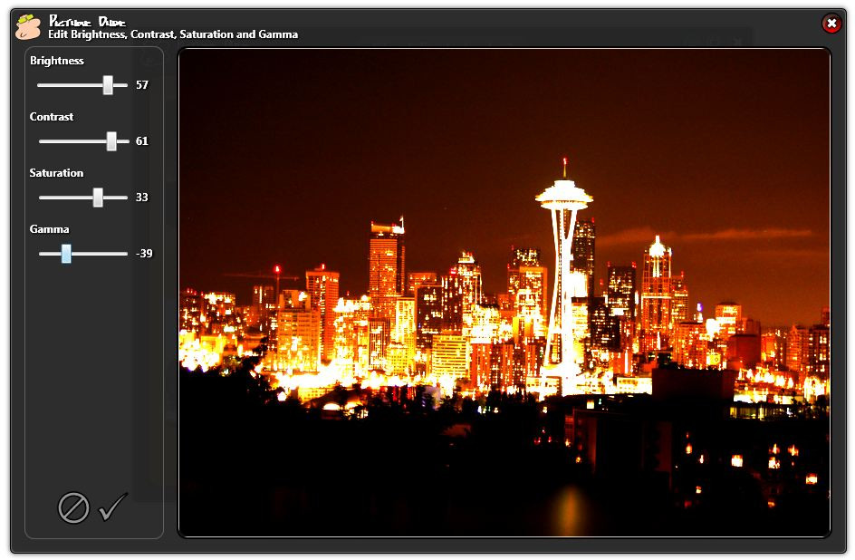 • Možnost úpravy obrázků změnou kontrastu, saturace, odstraněním efektu červených očí, ořezáním fotek, přidáním efektů nebo vodoznaku