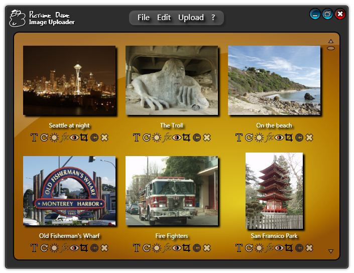 Picture Dude Image Uploader je aplikace, která vám umožní snadno a rychle nahrát vaše obrázky na Facebook. Aplikace podporuje formáty JPEG, GIF, Bitmap a RAW. Kromě toho můžete také upravit své obrázky změnou kontrastu, saturace, odstraněním efektu červených očí, ořezáním fotek, přidáním efektů nebo vodoznaku.