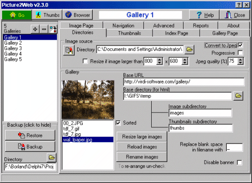 Tento program sestaví fotogalerii z obrázků z vybraných adresářů. Jeho ovládání je jednoduché a bez složitého nastavení. Podporuje formáty jpeg, gif a bmp.
