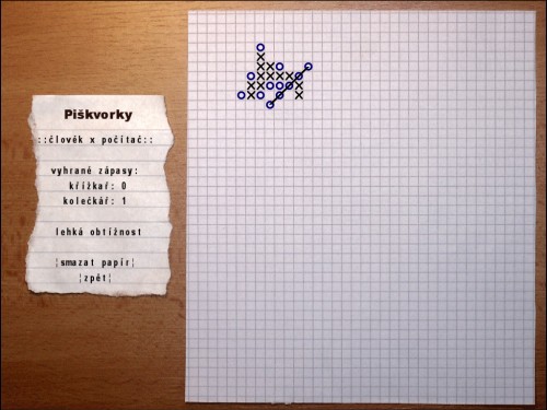 Piškvorky pro 1 až 2 hráče s velice podařenou grafikou. V programu je možno nastavit obtížnost hry proti počítači. Grafika hry připomíná klasickou školní lavici se čtevrečkovaným papírem.