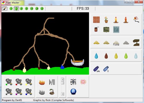 V této hře máte k dispozici suroviny, které pomocí myši umísťujete do místnosti. Mezi surovinami vznikají reakce, zajímavé efekty atd. Nejjednodušší příklad, pomocí zdi si uděláte misku, do ní nalijete olej a ten pomocí ohně zapálíte. Nebo můžete olej namíchat s jinou surovinou, tím efekt zlepšit, nebo celkově změnit chování reakce. Je to jen na vaší fantazii, zkoušejte, kombinujte, vytvářejte řetězce ... HRAJTE SI!