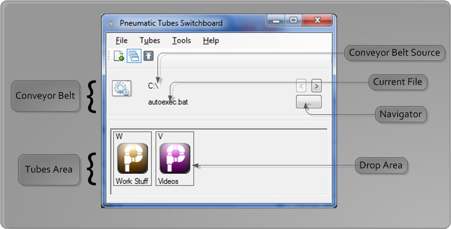 Pneumatic Tubes File Router je velmi snadno použitelný. Soubory můžete přesouvat pouhým přetažením a uvolněním. Můžete také používat klávesové zkratky pro přesun souborů do různých umístění.