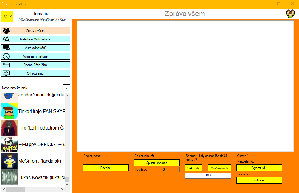 PnonaMSG (původně PnonaSkype) je nástroj, který Vám usnadní komunikaci přes Skype klienta. Má funkce: Zpráva všem (Se spammerem),Nálada, Multi nálada, Auto Odpověď, Vymazání historie a spammer jednoho člověka. Nově podporuje Pnona Přáníčka..