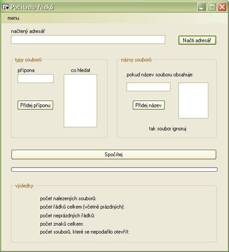 Tento program orientačně spočítá řádky ve vybraných typech souborů včetně podadresářů.