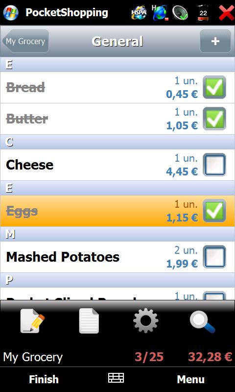 PocketShopping je šikovný prográmek, který funguje jako nákupní lístek pro Windows Mobile zařízení. Nabízí seznam produktů, které nakupujete pravidelně. Přehledně zobrazuje zboží a suroviny, které si pak zakliknete.