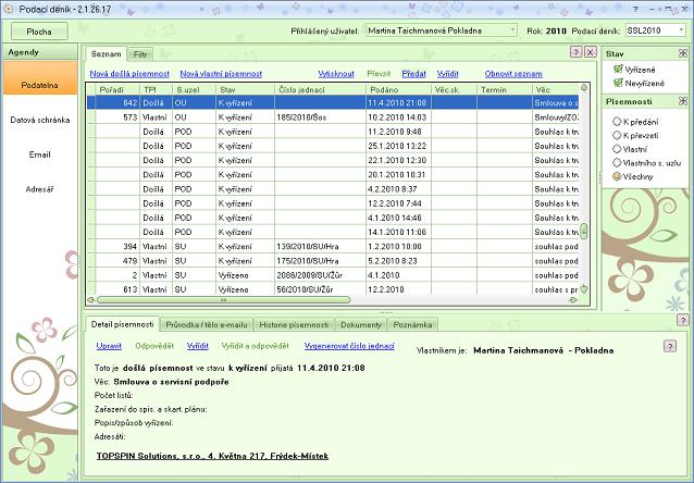 O programu Podací deník: