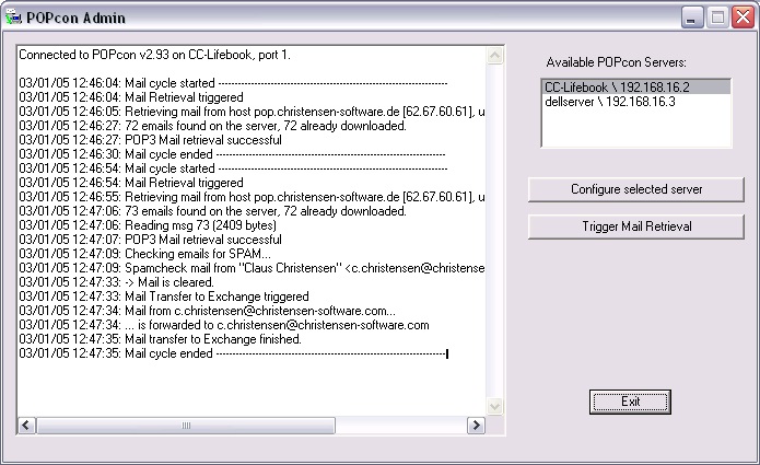 POPcon PRO je pro stažení emailů z POP3, POP3, SSL, IMAP a IMAP-SSL schránek a následně je rozešle podle definovaných parametrů. Tato profesionální softwarová aplikace má za cíl pomoci vám zopakovat e-mailové zprávy z POP3 schránek a poslat je do Microsoft Exchange Server poštovních schránek. Kromě toho působí také jako e-mailová brána. Tento nástroj nově podporuje detekci virů, pravidla pro příchozí poštu a vzdálenou správu.