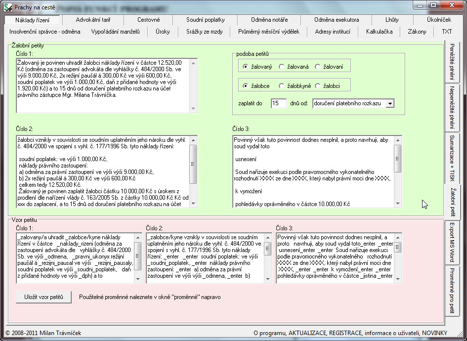 Program sám formuluje petit, nebo si ho můžete pozměnit podle Vašeho přání. Takže petit pak stačí pouze vložit do dokumentu. K dispozici jsou nově 3 šablony pro petit.