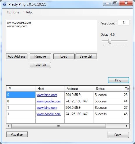 Pretty Ping je určen k zajištění větší flexibility Windows Ping Pretty Ping je GUI řízený ping s více možnostmi než standardní ping a větší flexibilitou. To vše je v jednom pěkném tvaru se záznamem. Základní vlastnosti: Výkonný / flexibilní PING Windows Form více počítačů současně přihlášení / export