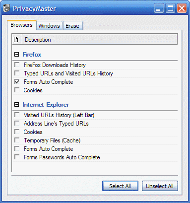 Privacy Master má za úkol odstranit stopy vašich činností na počítači, např.: navštěvované internetové stránky, cache, cookies a také seznam naposledy navštívených dokumentů. Tato aplikace je k dispozici zcela zdarma!